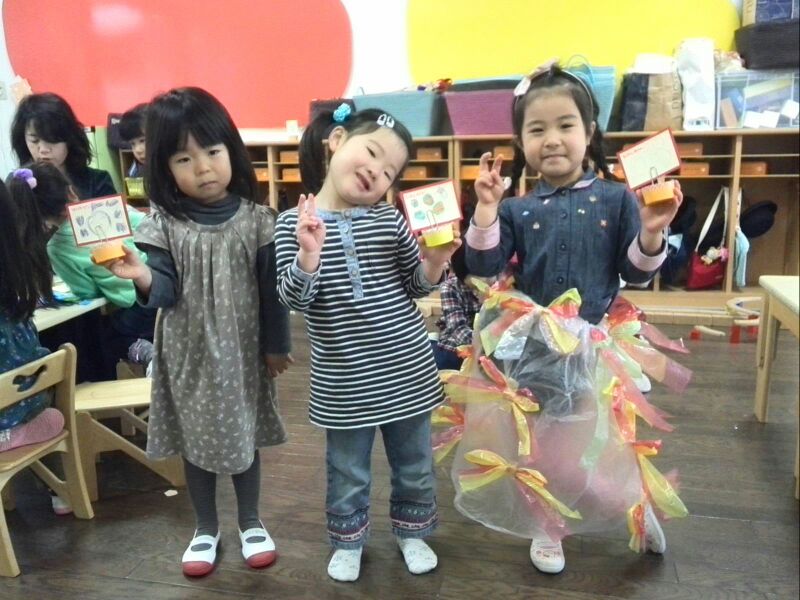 昨日から約束していたフルーツバスケット、椅子取りゲームを楽しんだ後はお部屋をお掃除。大好きだったお部屋、そしておもちゃや絵本。雑巾がけをして綺麗にしました。新しいゆりさんにも幼稚園の事を大好きになってほしいね♪
