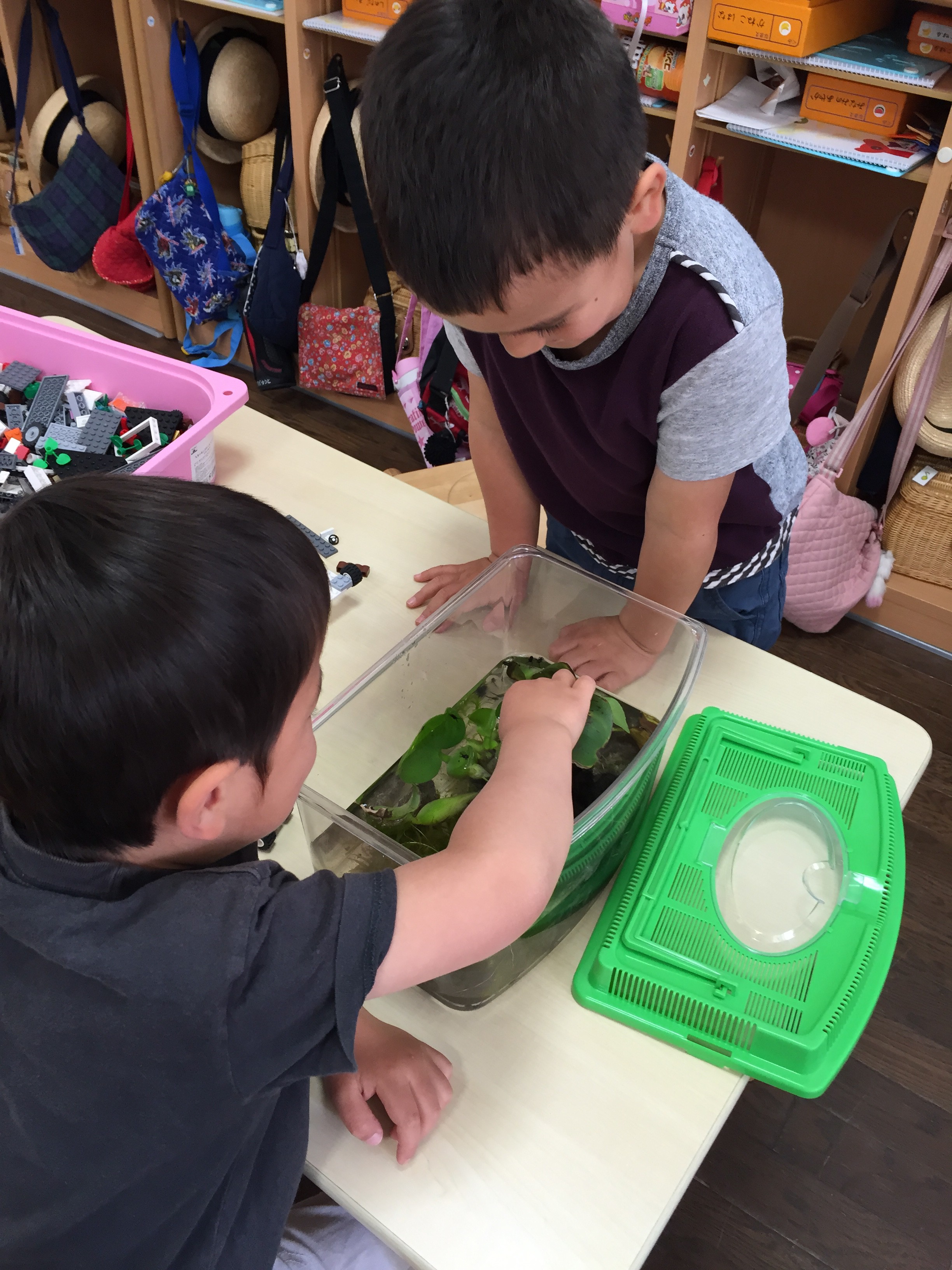 4月30日、さくら組に可愛らしいおたまじゃくしがたくさんやってきました。