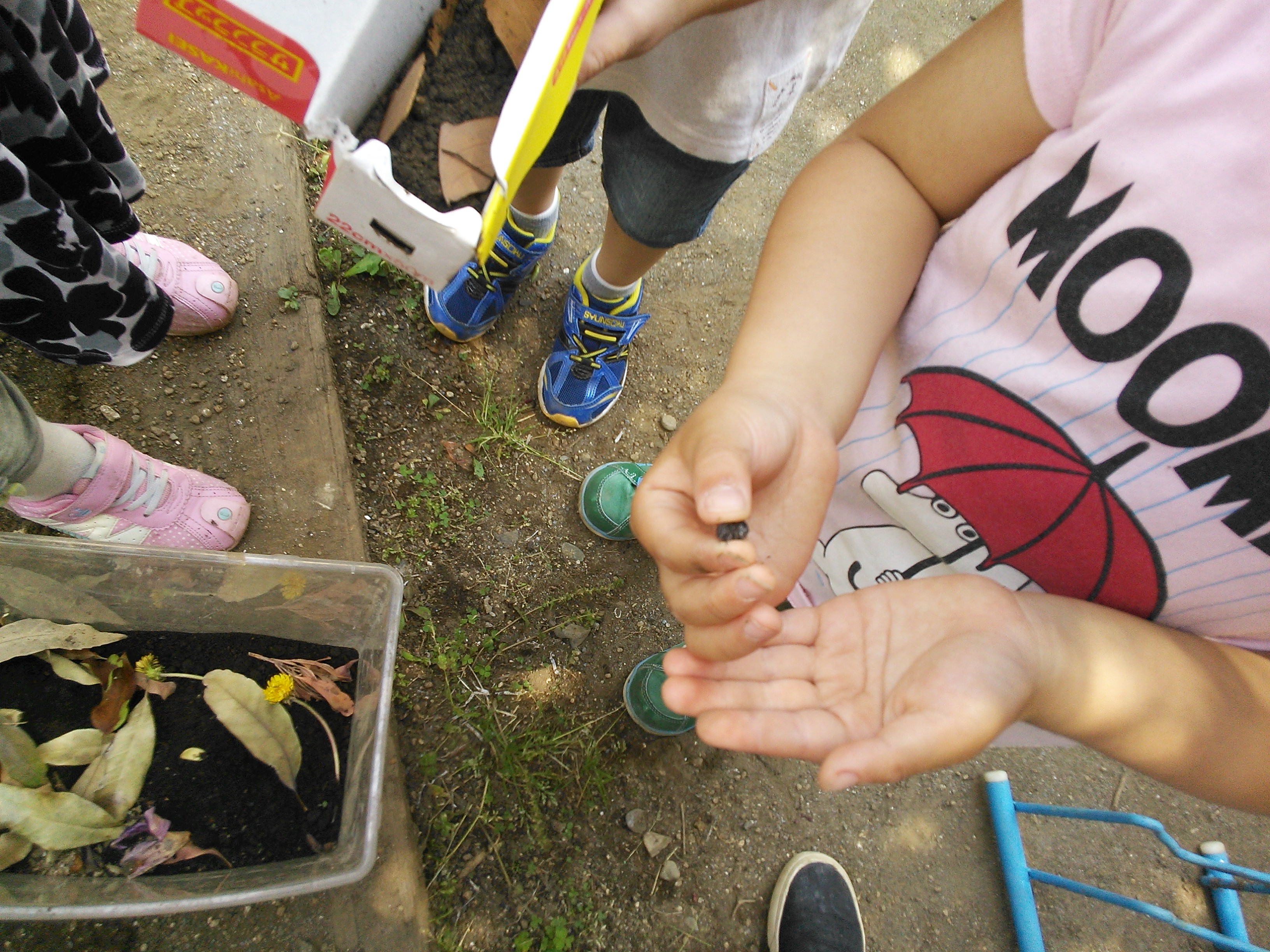 暑くなり、ダンゴ虫など小さな生き物が出てきて子どもたちが心を寄せる姿が見られるようになりました。